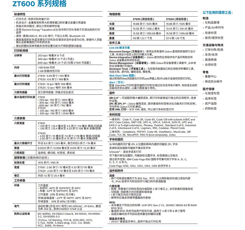 斑马ZT610、ZT620