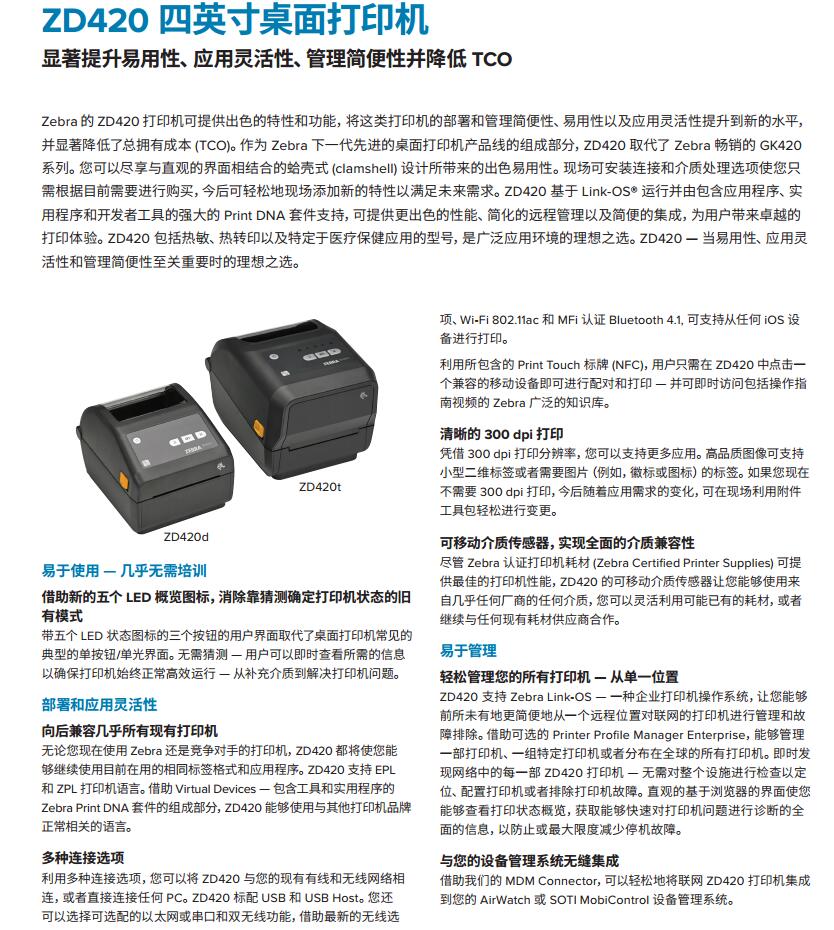 斑马ZD420桌面打印机