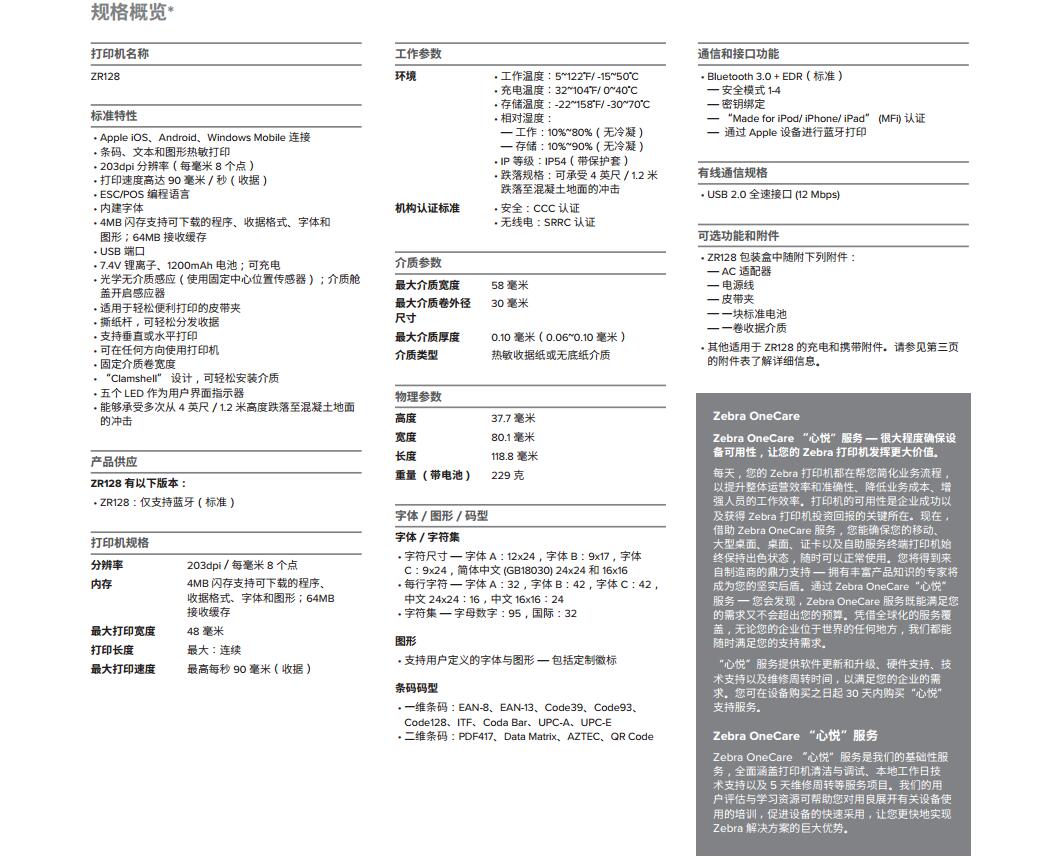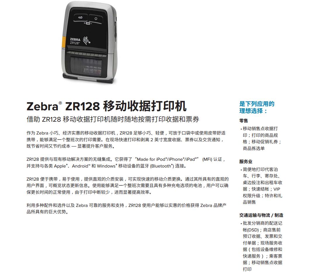 斑马ZR128便携式打印机